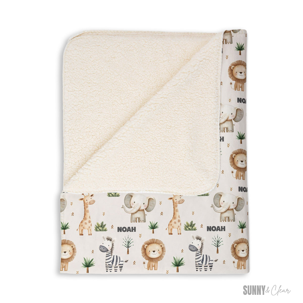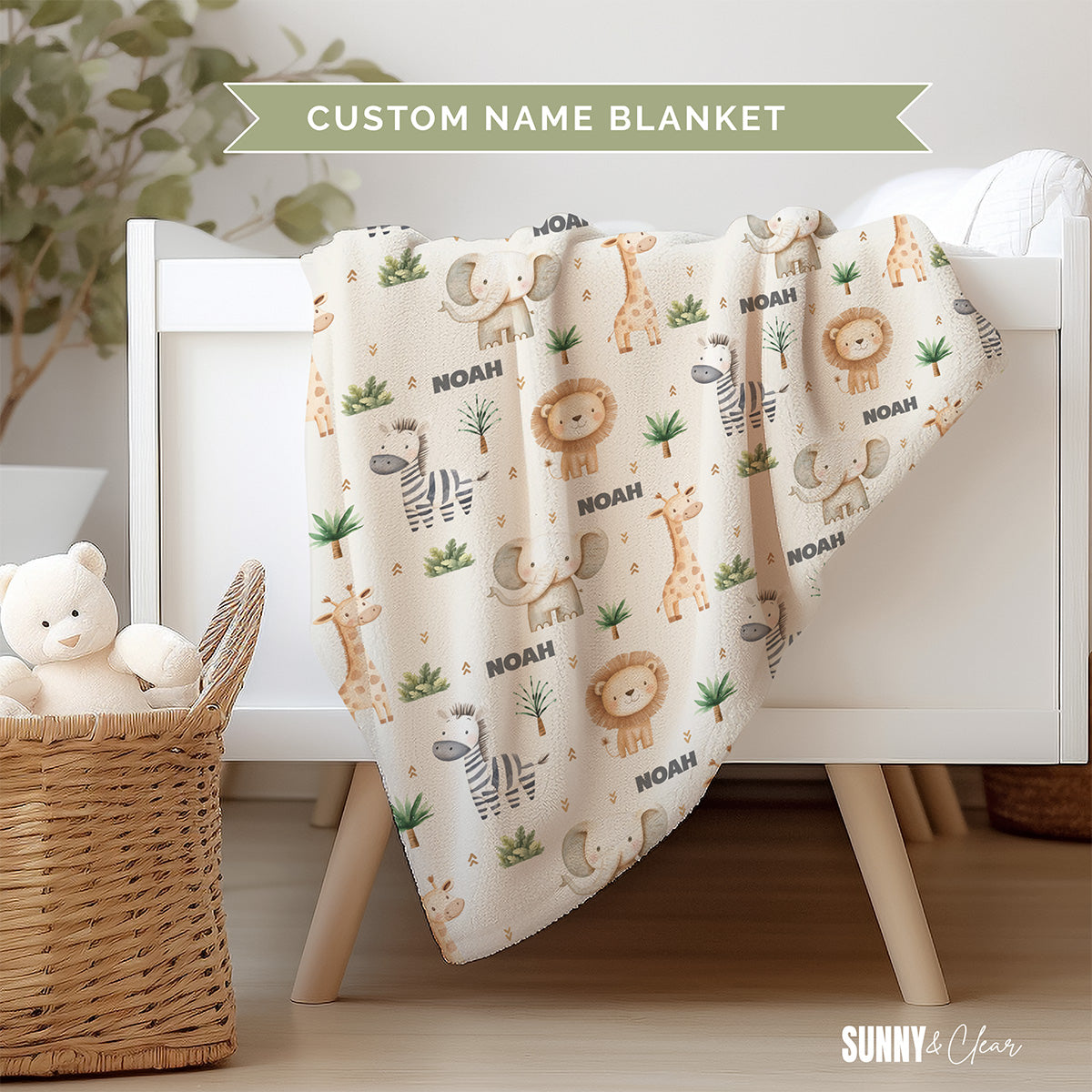 Personalized Safari Animals Baby Blanket: Cozy Fleece Nursery Decor Gift for Boy