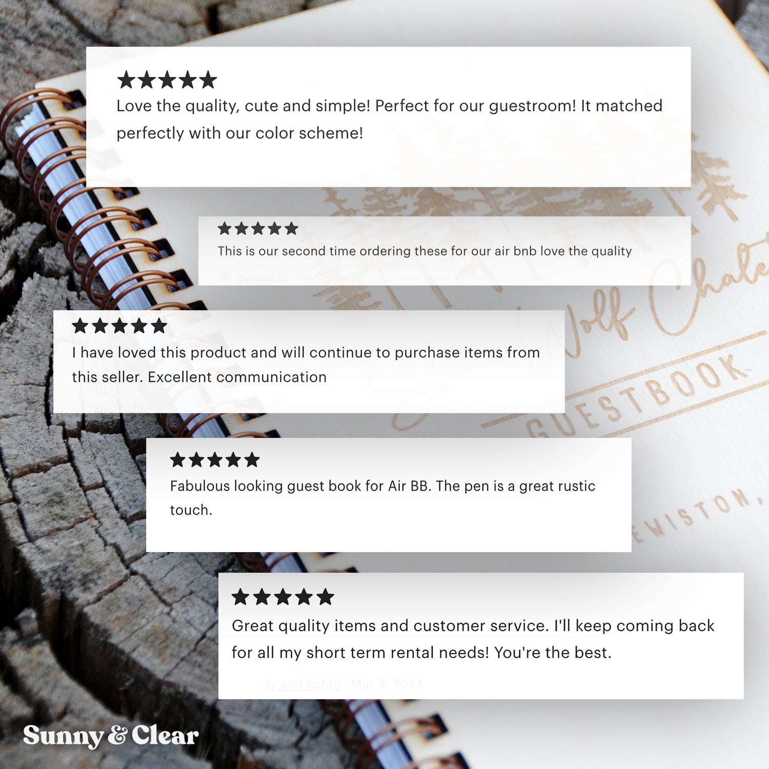 So thrilled to have found Sunny & Clear to create my Airbnb welcome book cover. They were so responsive and accommodating in customizing the graphics. I will be using this company again in the future! Highly recommend!